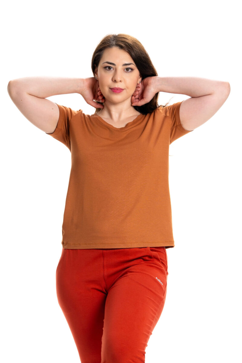 Designul său minimalist este completat de un croi atent realizat, ce urmărește linia corpului fără să strângă, oferind o libertate totală de mișcare. Fie că îl porți acasă, la plimbare, la birou sau în vacanțe, acest tricou te va face să te simți bine în pielea ta – la propriu.