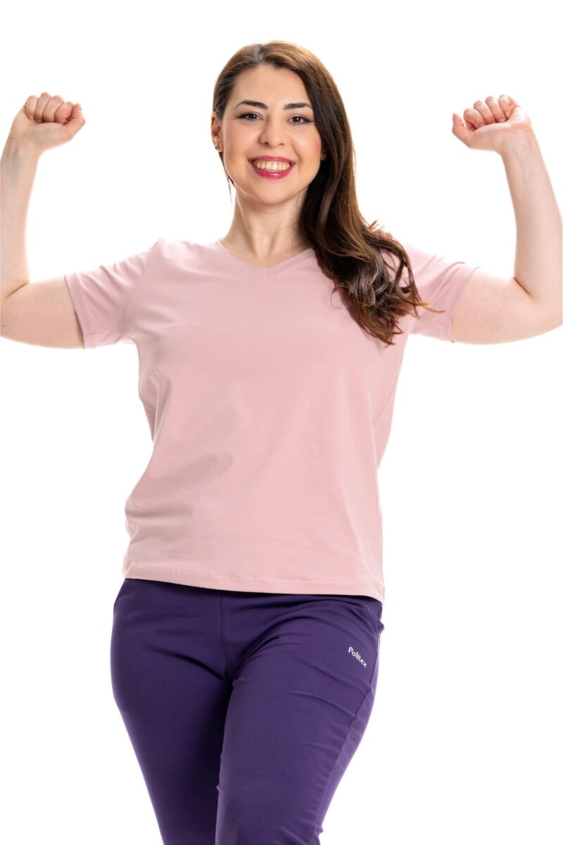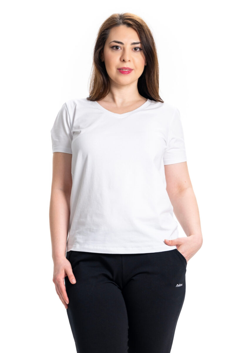 Adaugă un plus de rafinament garderobei tale cu acest tricou de damă cu anchior, un model clasic, dar mereu actual, ideal pentru femeile care pun preț pe confort, versatilitate și eleganță discretă. Decolteul în V (anchior) conferă un aspect feminin și alungește optic gâtul, fiind perfect pentru orice tip de siluetă. Disponibil într-o gamă variată de culori, acest tricou poate fi purtat atât în ținute casual de zi cu zi, cât și în combinații smart-casual, alături de sacouri, fuste sau pantaloni eleganți.